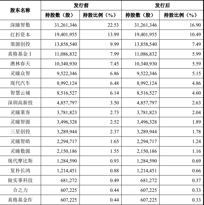 根據格靈深瞳上市後的股本結構,紅杉資本持股比例10.49%,為第二大股東;真格基金及其一致行動人持有1169萬股,持股比例6.32%。