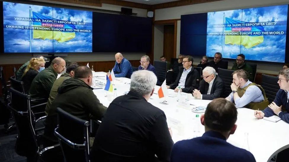 這裏的三國不是魏蜀吳,而是波蘭、捷克、斯洛文尼亞。三國總理,波蘭總理莫拉維茨基、捷克總理菲亞拉、斯洛文尼亞總理揚沙,15日訪問了戰火中的烏克蘭首都基輔,當晚同烏克蘭總統澤連斯基進行了會晤。