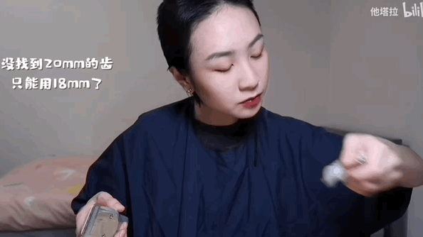 一上手本來想用保守的40mm卡刀,但是當理髮器嗡嗡震動起來的時候,她突然改變主意,直接上了30mm的卡刀,接着是18mm。