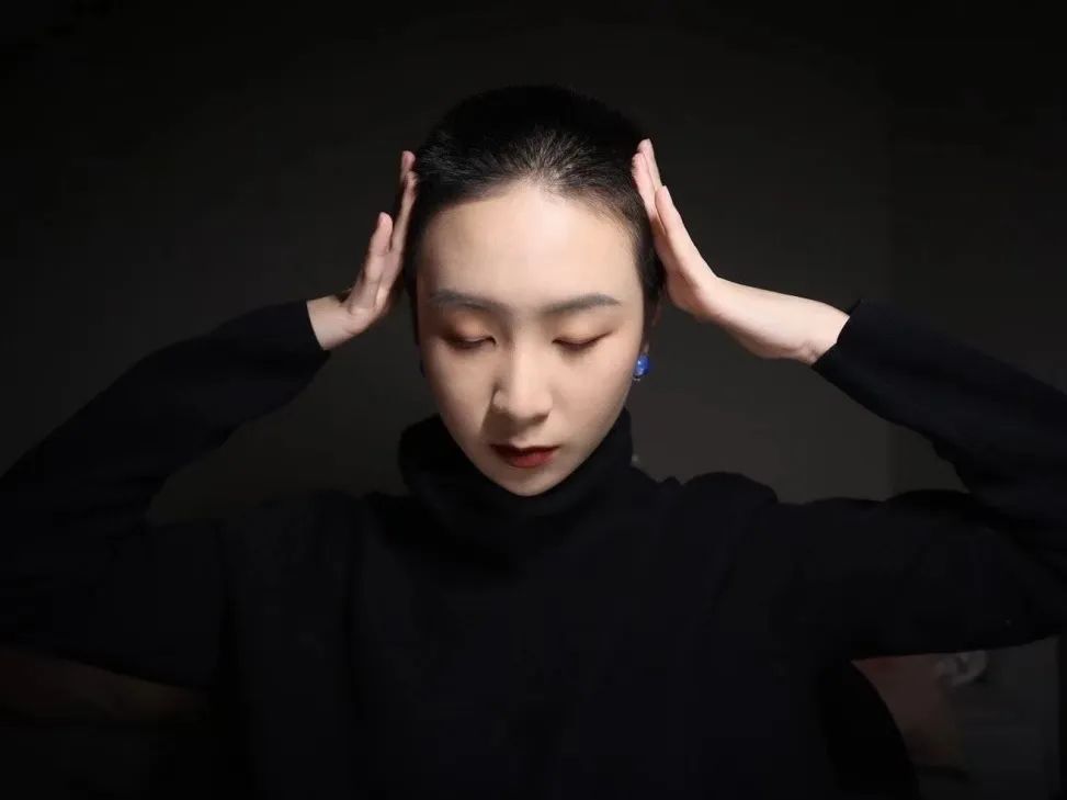她的頭髮是非常細軟的髮質,總是會不聽話地貼在自己的腦袋上。
