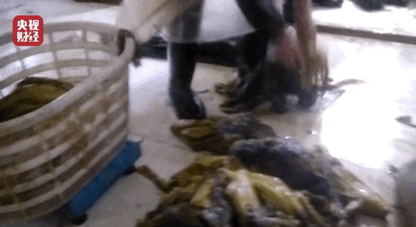 食物被隨便堆放在筐裏,而這些筐直接被堆在地上,甚至被推來推去;