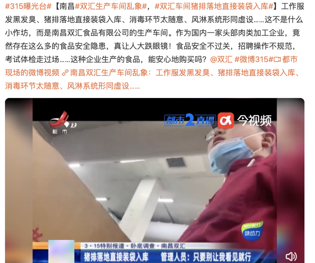 除了「老壇酸菜」面,搭配泡麪的雙匯,在3·15也被曝光了。