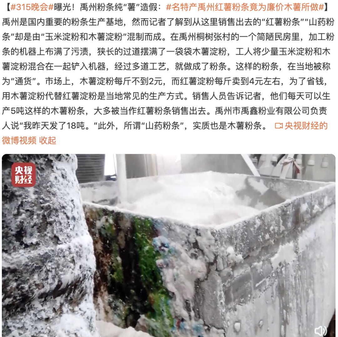 全國聞名的名特產「禹州紅薯粉條」,其實是用廉價木薯粉做的。