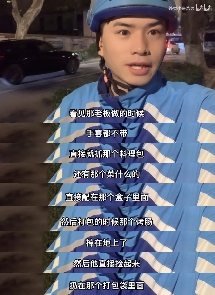 “我親眼看見,老闆打包時,掉在地上的食物直接放進了打包盒。”