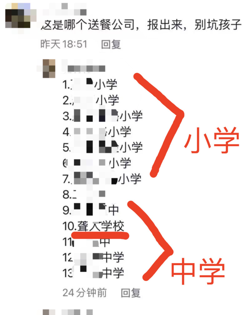 網曝的被送餐的學校名單中甚至還有聾人學校。