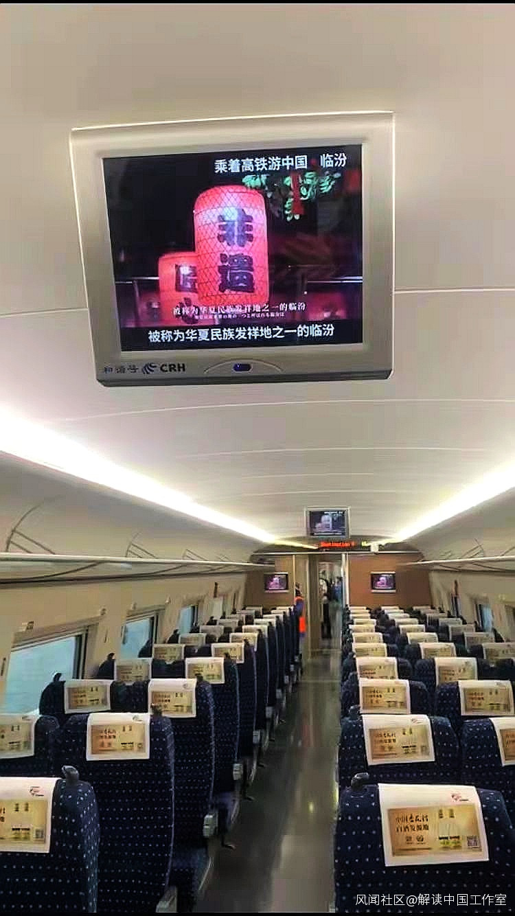 △《乘着高鐵遊臨汾》在高鐵列車上播放