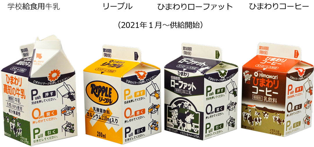 以首次採用這款紙盒的高知縣學校為例。其每年分發的午餐紙包牛奶約為 600 萬包,如果每根吸管的重量為0.5g,則意味着每年就會消耗掉3噸左右的樹脂。考慮到低年級學生依舊會使用吸管,SchoolPOP®也保留了吸管孔。但即便如此,該地區使用的吸管數量也會減少1/3,從而減少約1噸樹脂的消耗,相當於製造大約100,000個標準規格PET瓶。