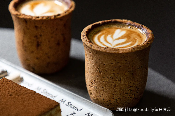 此前,精品咖啡「M stand」的招牌“燕麥曲奇拿鐵”在魔都火爆一時。天然穀物烘焙的曲奇餅乾就着香醇濃厚的拿鐵一起吃掉,新奇的操作讓前去打卡的顧客絡繹不絕。但甜膩的餅乾與咖啡一起下肚,飽腹感自然不必言説;而為了方便拿取,餅乾杯外還是得套上一層塑料杯。這款新奇的咖啡杯終究是創意多於實用。