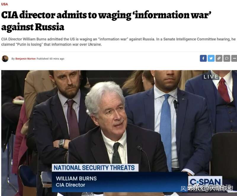 在美國參議院情報委員會的聽證會上,美國CIA局長威廉 · 伯恩斯公開表示,美國正在對俄羅斯發動一場“信息戰”。並且,從目前的情況上來看,美國的“信息戰”十分成功,已經成功對俄羅斯的決策產生了非常明顯的影響。按照威廉 · 伯恩斯的原話,就是“普京正在輸掉關於烏克蘭的信息戰”。