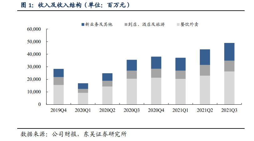 先看到店業務,根據美團財報顯示,2019-2021年,三年時間到店業務並沒有大幅度增長。受制於疫情影響,在2020年到店業務甚至出現下滑。