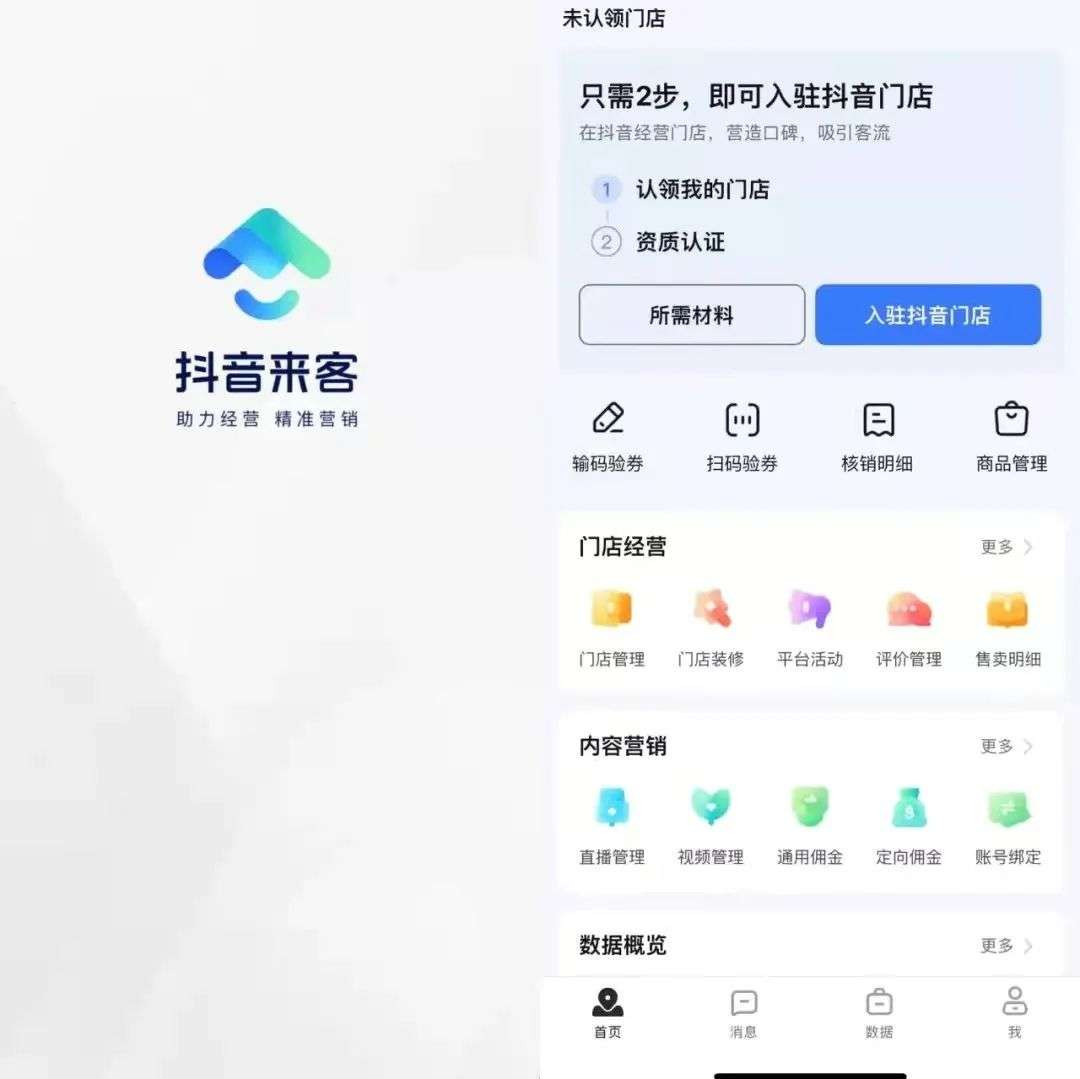 在App中,商家可以通過“認領門店”和“資質認證”,完成自己店鋪信息的關聯入駐,然後就可以在移動端隨時隨地管理抖音本地生活店鋪。