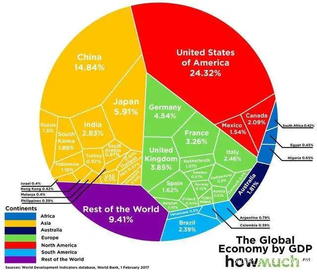 ▲圖為世界GDP佔比,美國依舊是世界第一