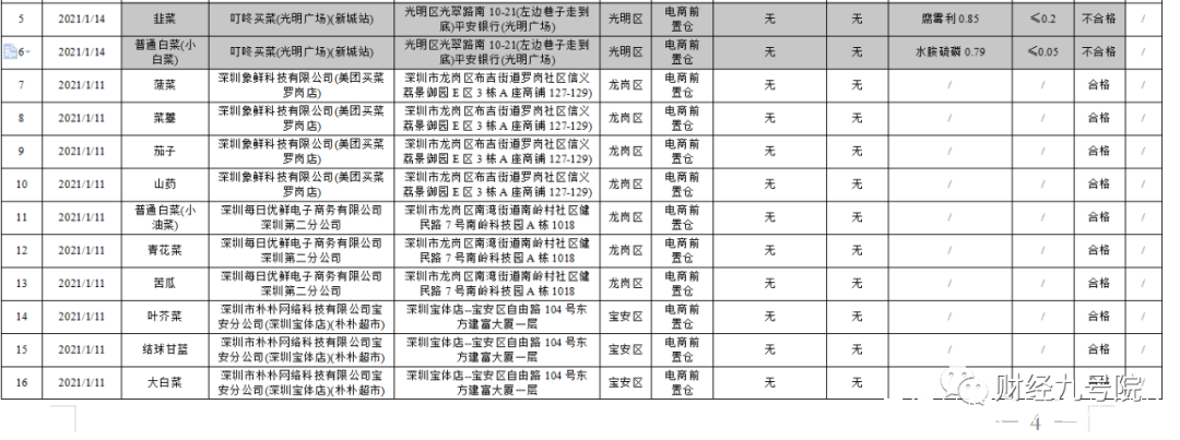 其中北京不姜就電子商務有限公司(叮咚買菜)第六十一分公司經營的螺絲椒,經北京市食品安全監控和風險評估中心(北京市食品檢驗所)檢驗發現噻蟲胺(一種殺蟲劑)不符合食品安全國家標準。叮咚買菜申請複檢後仍然維持原結論。