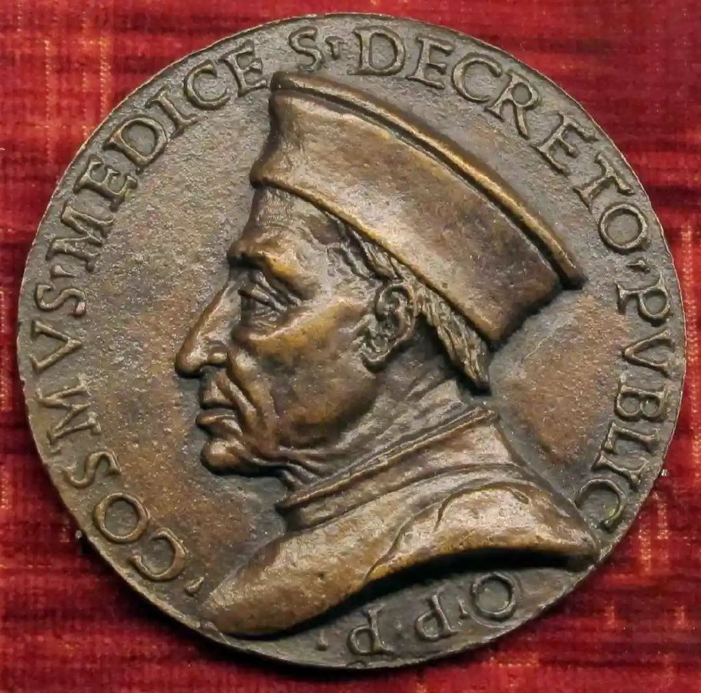圖5. 佛羅倫薩共和政府1460年代中後期為“建國之父”柯西莫鑄造的紀念章,多納泰羅設計丨圖片來源:維基百科