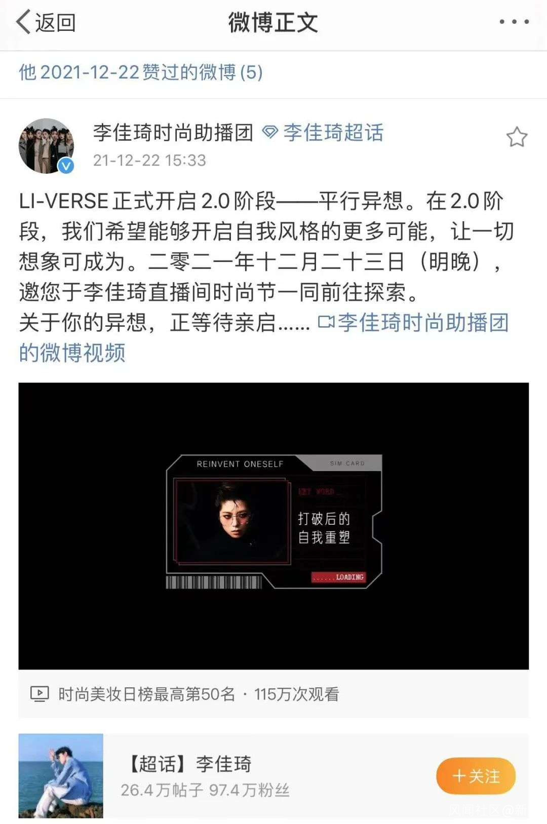 巧合的是,在去年12月20日薇婭被封殺的兩天之後,李佳琦時尚助播團官方微博發佈了宣傳片,表示助播團升級,“正式開啓2.0階段”。