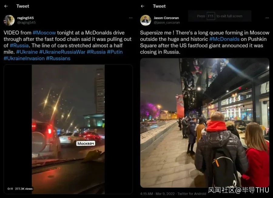 3月8日,麥當勞宣佈暫時關閉在俄羅斯的850家餐廳。