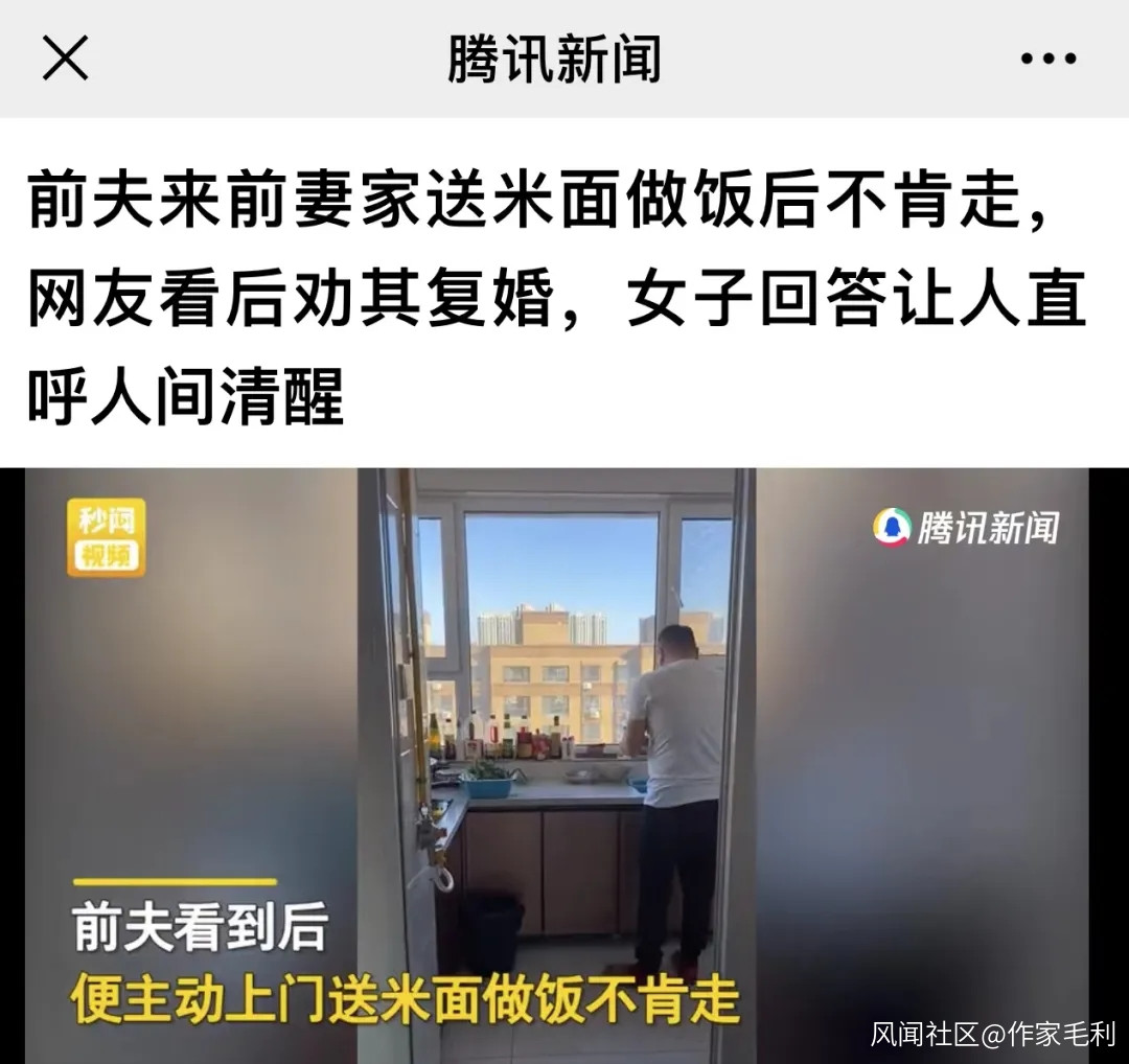 幾天前有個新聞,説女子居家隔離期間,前夫上門送米送面還做了頓飯。這新聞讓人浮想聯翩,忽然覺得是一篇絕佳的短篇小説,很想以此為開頭寫下去。網友送祝福説,別走了,乾脆復婚。