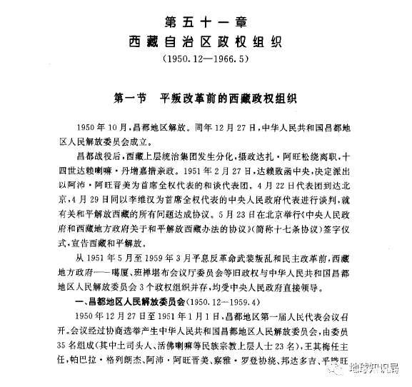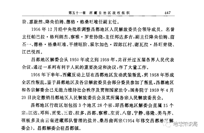 1、在當時情況下,中央對於昌都地區在全國行政區劃中的地位,並沒有明確説法;