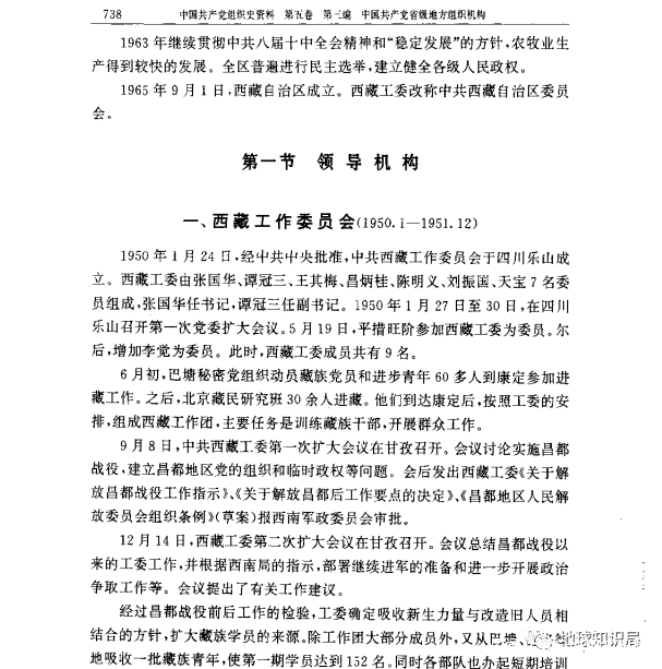 而西藏工委,就是西藏自治區黨委的前身,1965年9月西藏自治區成立時,中央決定西藏工委“改名”為西藏自治區委員會。請注意,是改名,也就是説,機構實體不變,只是名稱變動。