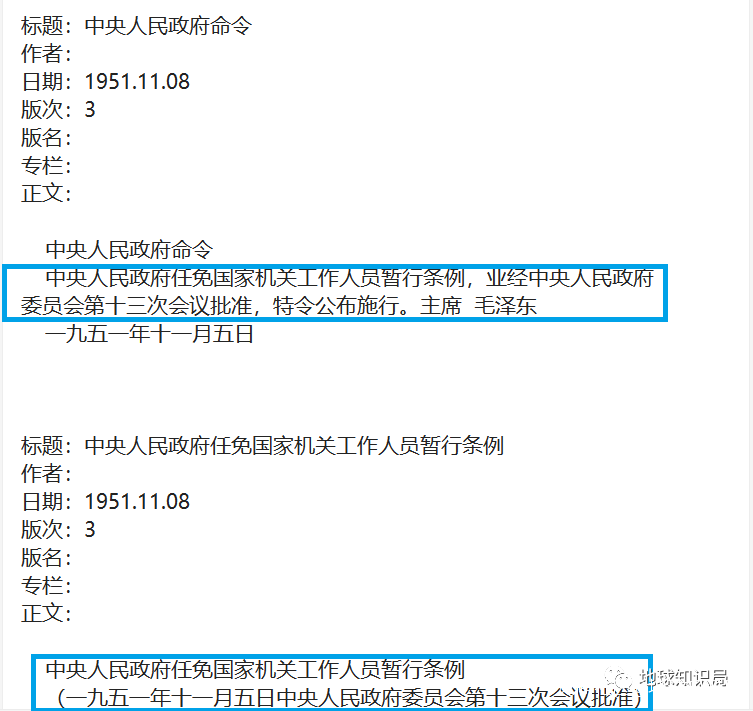 查閲**“兩令”**所附1954年以前中央人民政府和政務院的任免,都沒有刊載關於昌都地區機構人員任免的信息。
