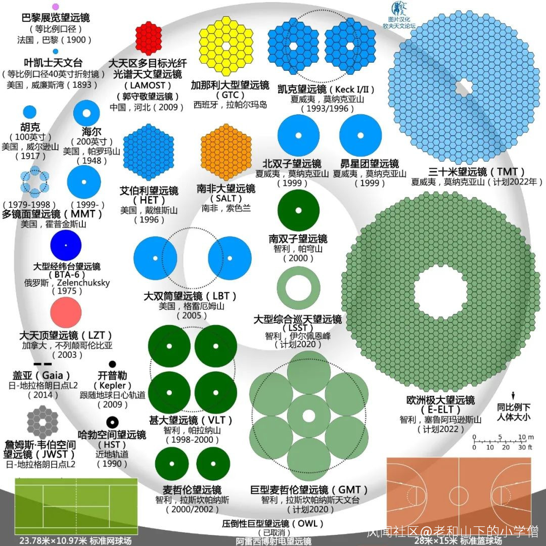 對望遠鏡來説,口徑就是王道。對口徑大小沒概念的話,可以對比一下哈勃望遠鏡,2.4米。