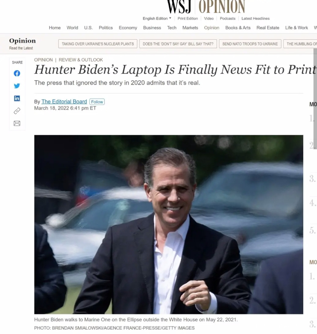 另一方面,當時作為總統候選人的拜登,以及後來成為白宮新聞秘書的普薩基都曾聲稱,有關亨特筆記本電腦上那些電子郵件的消息,是俄羅斯針對美國大選而釋放出來的虛假信息。