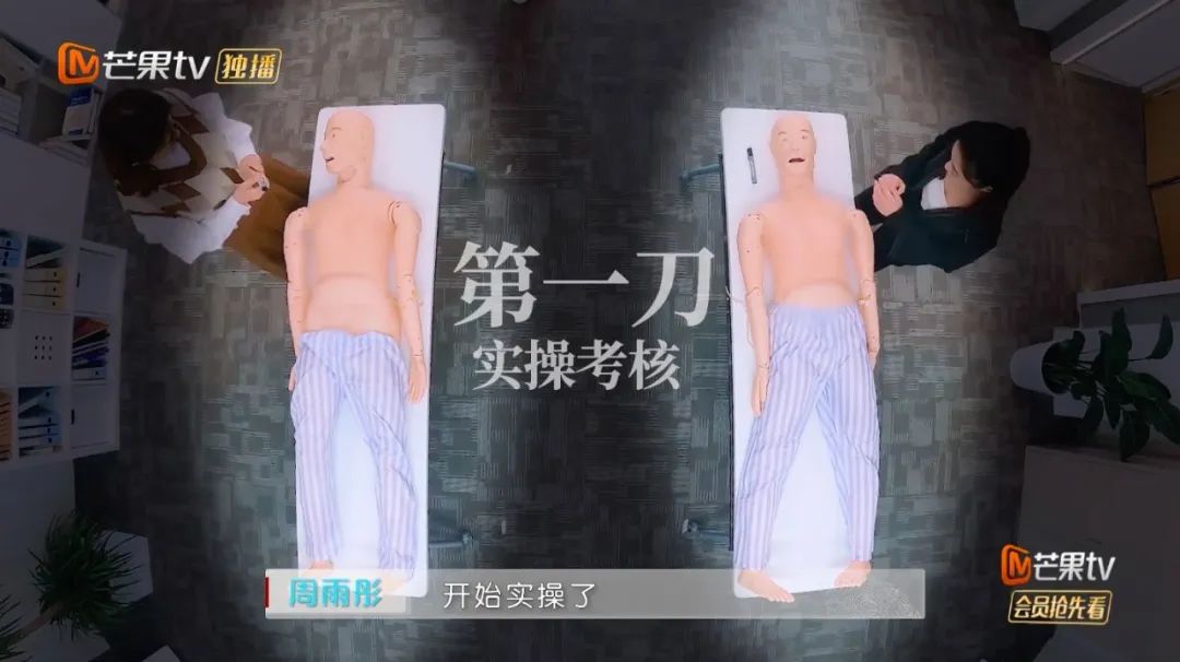 即,在人體模型上,劃下頭面部第一刀,和胸腹部第一刀。