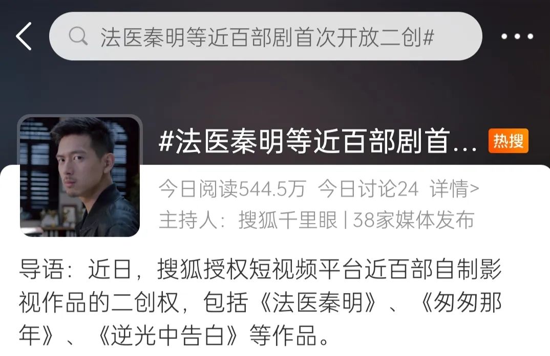 法醫秦明等影視作品開放二創。