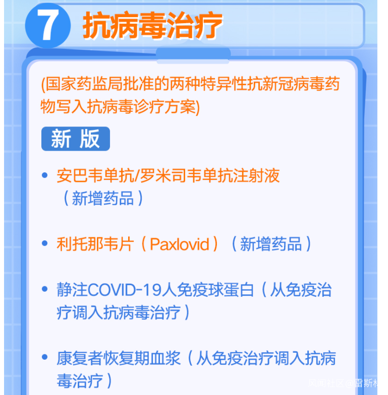 然後把國家藥監局特批的兩款新冠抗病毒口服藥加入了診療方案: