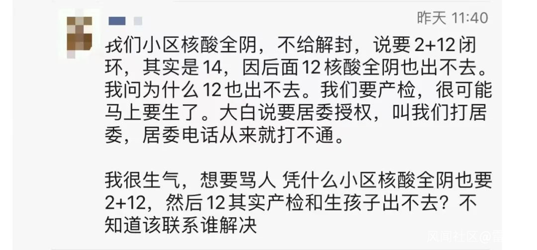 但有些人不一樣,他們的工作必須出門,或者他們家裏有病人需要定期檢查,我有位中學同學,昨天在朋友圈抱怨被封很多天了影響他們去產檢: