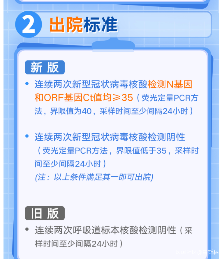 同時,國家衞健委還下調了確診者的出院標準,以往CT值大於40才能出院,現在大於35就能出院了。
