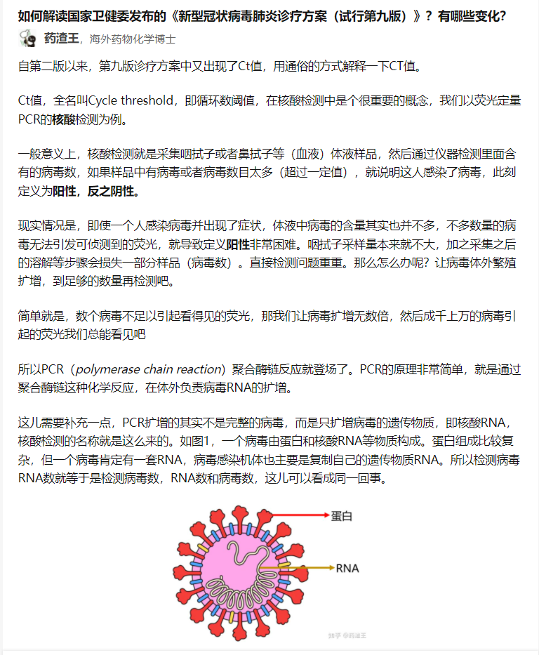 CT值全名叫Cycle threshold,即循環數閾值,在核酸檢測中是個很重要的概念。知乎上有一位藥物化學博士@藥渣王給了一個通俗易懂的科普: