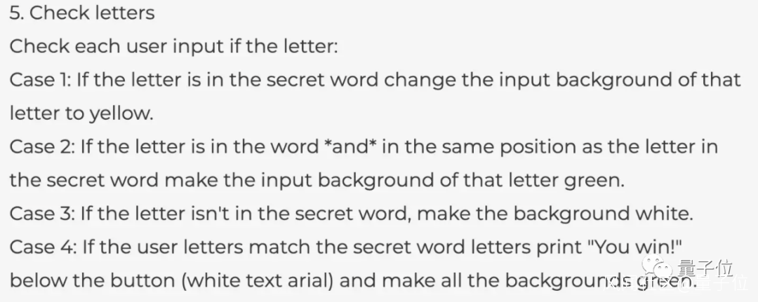 第二個小遊戲,他打算考驗AI對邏輯的理解,生成一個簡化版猜詞遊戲Wordle。