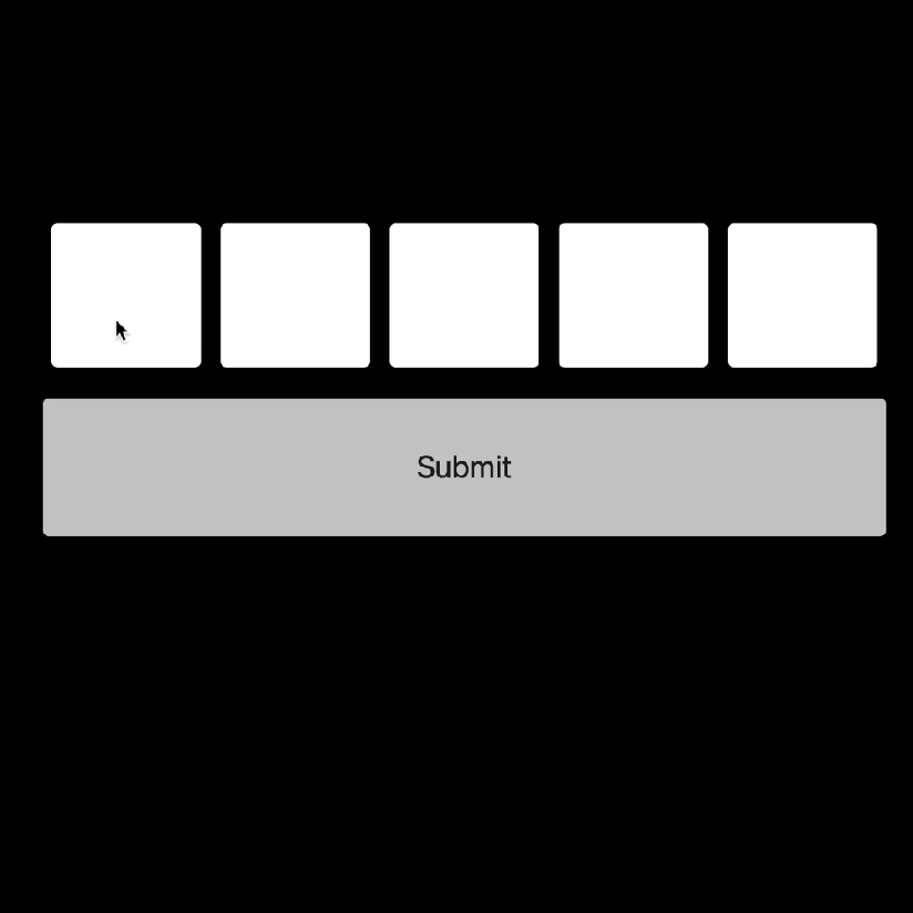 描述字母輸入框的樣式,包括寬高、文字居中對齊、每個輸入框有獨立ID;輸入時自動大寫;再加一個確認按鈕。