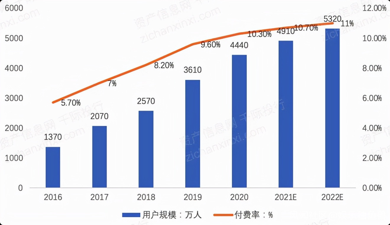 直播打賞是遊戲直播平台的重要利潤點,而付費會員、遊戲聯運及電競賽事也是長期主義的重要部分。付費打賞已經觸摸到天花板,有數據顯示,受人均可支配收入的不斷增長及更強勁的支付意願所驅動,中國視頻直播行業的付費用户數目由 2016年的1370萬增至2019年的3610萬,複合年增長率為38.12%,超過用户羣的增長率。預計 2022年付費用户將達到5320萬,付費率為11%。