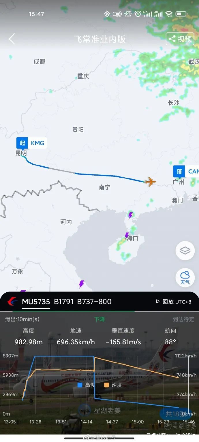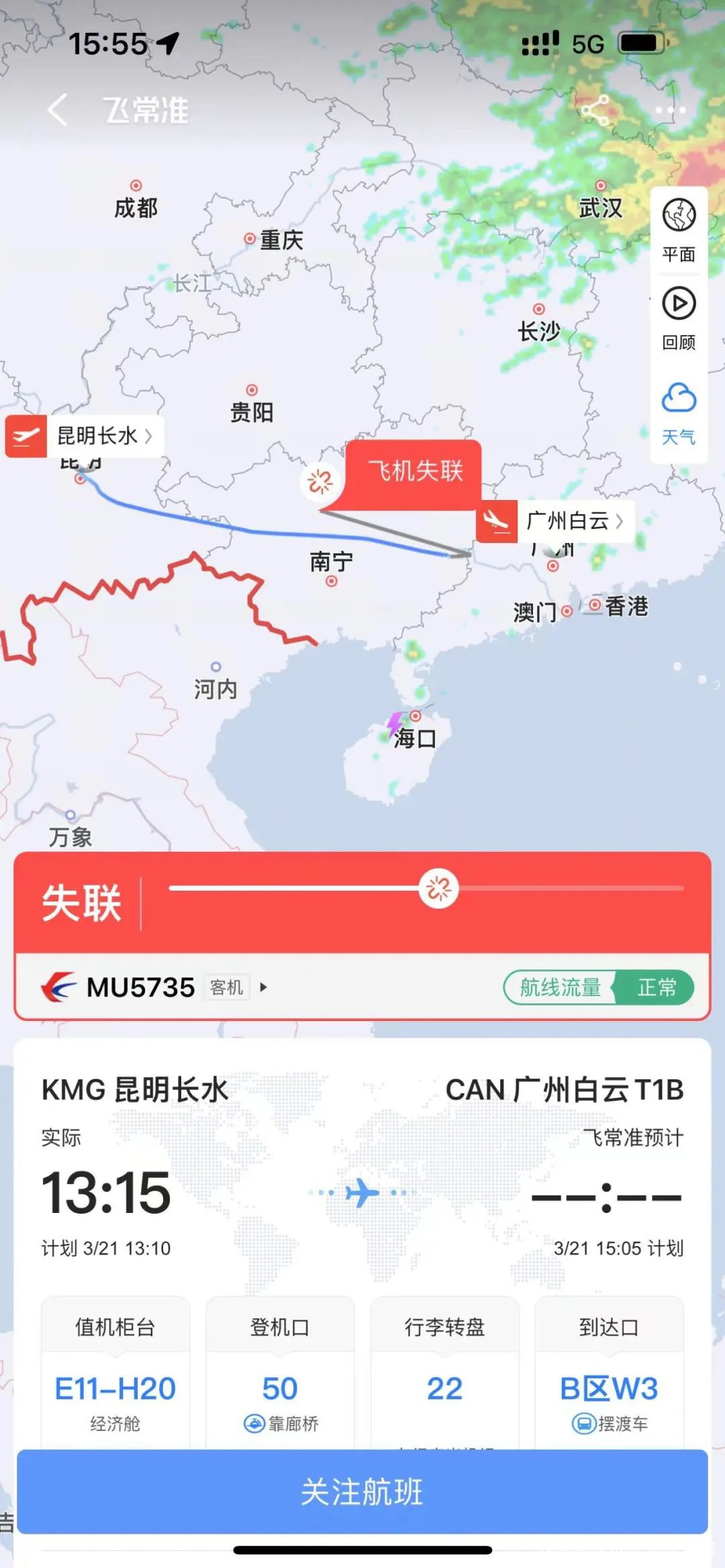 從昆明飛往廣州的東航MU5735,在過梧州時墜毀,並引發山火。機上旅客123人、機組9人,目前傷亡未知。