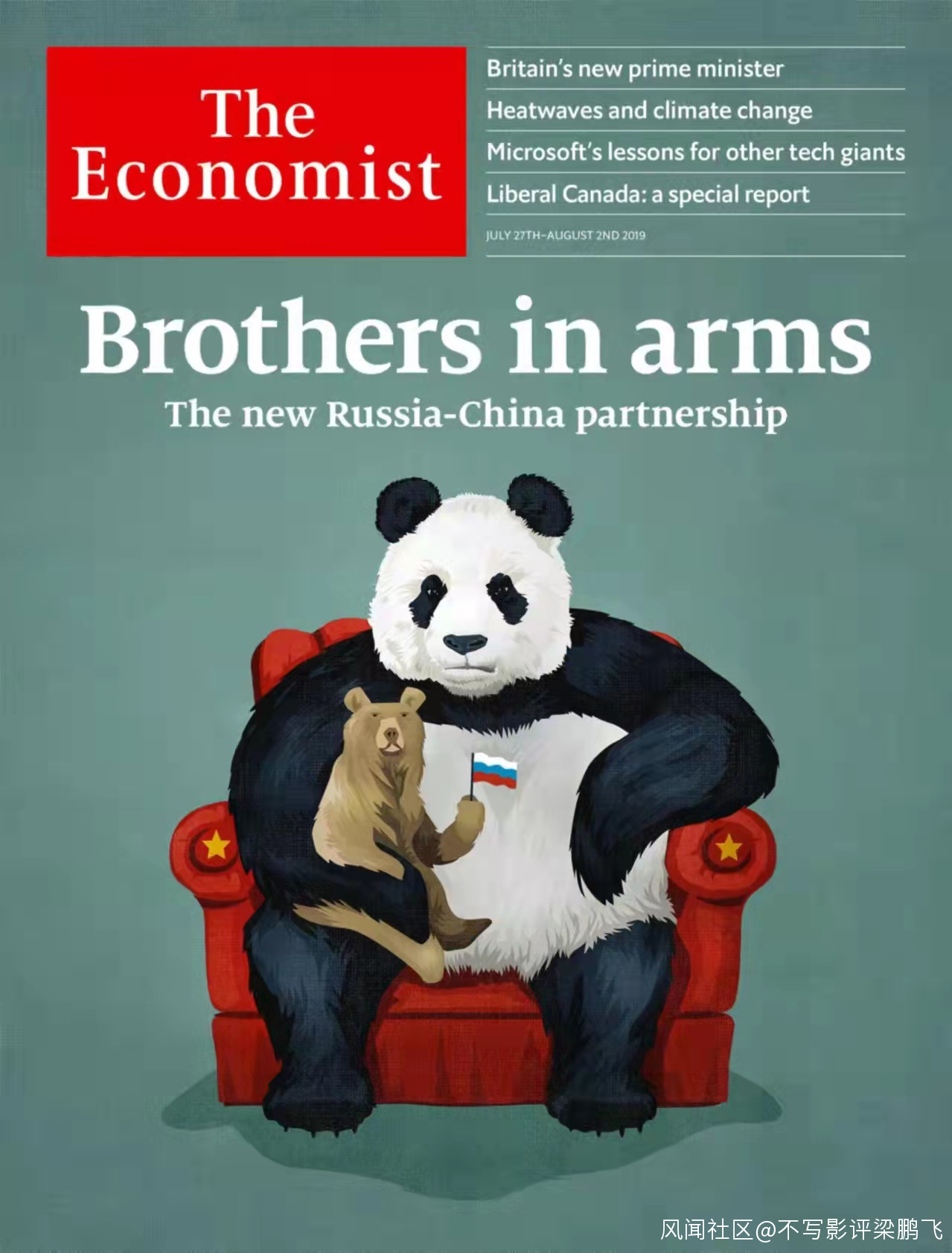 當然,對於俄羅斯的真實實力,2019年《經濟學人》雜誌某期封面文章配了這樣一張圖