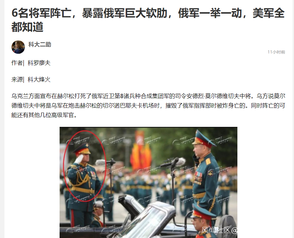 而這些天毛子在烏克蘭戰場上的表現,恐怕連曾經嚇唬人的軍事實力也要大打折扣了。尤其是戰場上已經摺損了1名中將,5個少將,基本上都是因為通訊原因被定點清除