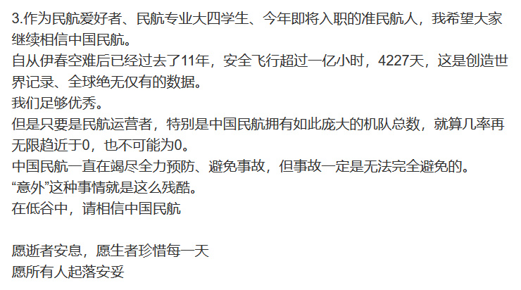3.作為民航愛好者、民航專業大四學生、今年即將入職的準民航人,我希望大家繼續相信中國民航。