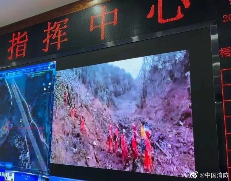 16時55分,梧州支隊全勤指揮部到場。目前共調派162輛消防車輛、761名消防救援人員。