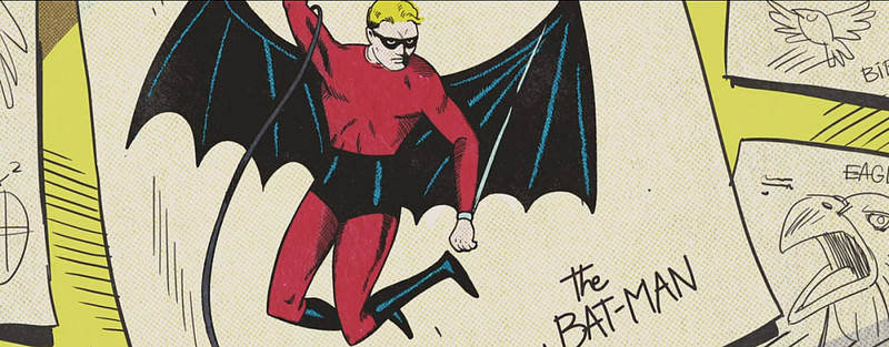 1938年,兩個來自俄亥俄州的年輕人創造了美漫史上第一位超級英雄“超人”,憑此創意每週能掙800美元。1939年某週五,出版社編輯找到漫畫家鮑勃·凱恩,問能否畫出另一位超級英雄,凱恩表示,為了這筆錢週一就能交稿。