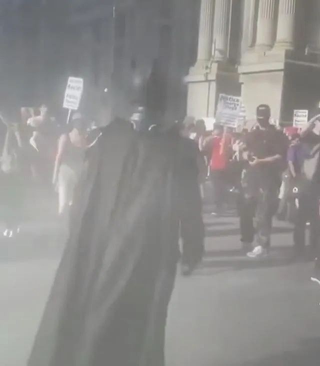 在美學表徵上,諾蘭是出了名的“實拍狂魔”,在攝影棚裏搭建蝙蝠洞,小丑要炸哥譚醫院就是真炸燬了芝加哥一座廢棄工廠,他佈置的故事舞台就是一座冷峻的鋼鐵叢林,有高聳入雲的大樓也有骯髒混亂的街巷,**在這個舞台上發生的一切對觀眾來説似乎都有了實感。而在主題層面,《黑暗騎士》所提的“電車難題”,《黑暗騎士崛起》所展現的階級落差,都是現實矛盾的放大版。**這也是為什麼當現實偶爾“魔幻”時,和電影會非常相似,2020年美國爆發大規模遊行,抗議人員身穿蝙蝠俠服裝走上街頭就成為了社交媒體熱點。