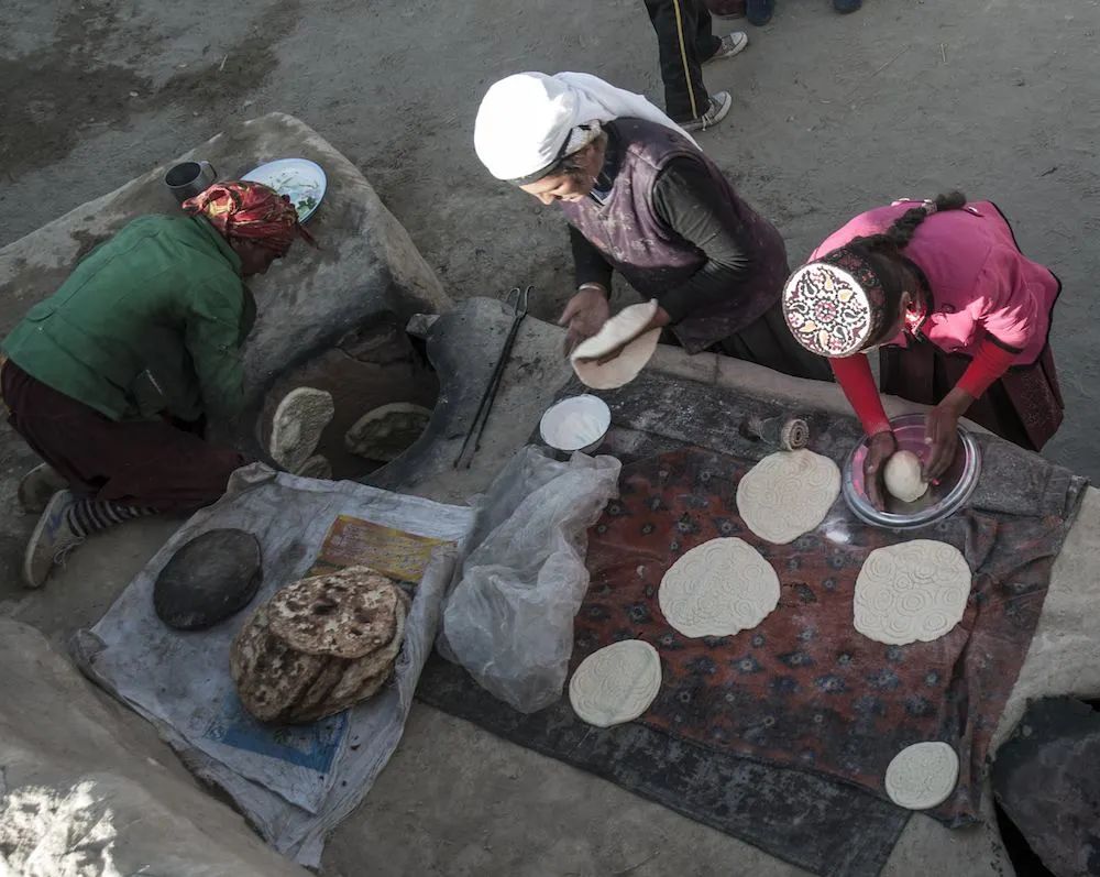 這時**“肖貢”**會將大饢掰成很多小塊,吃一口,然後大家才能開始吃美食。