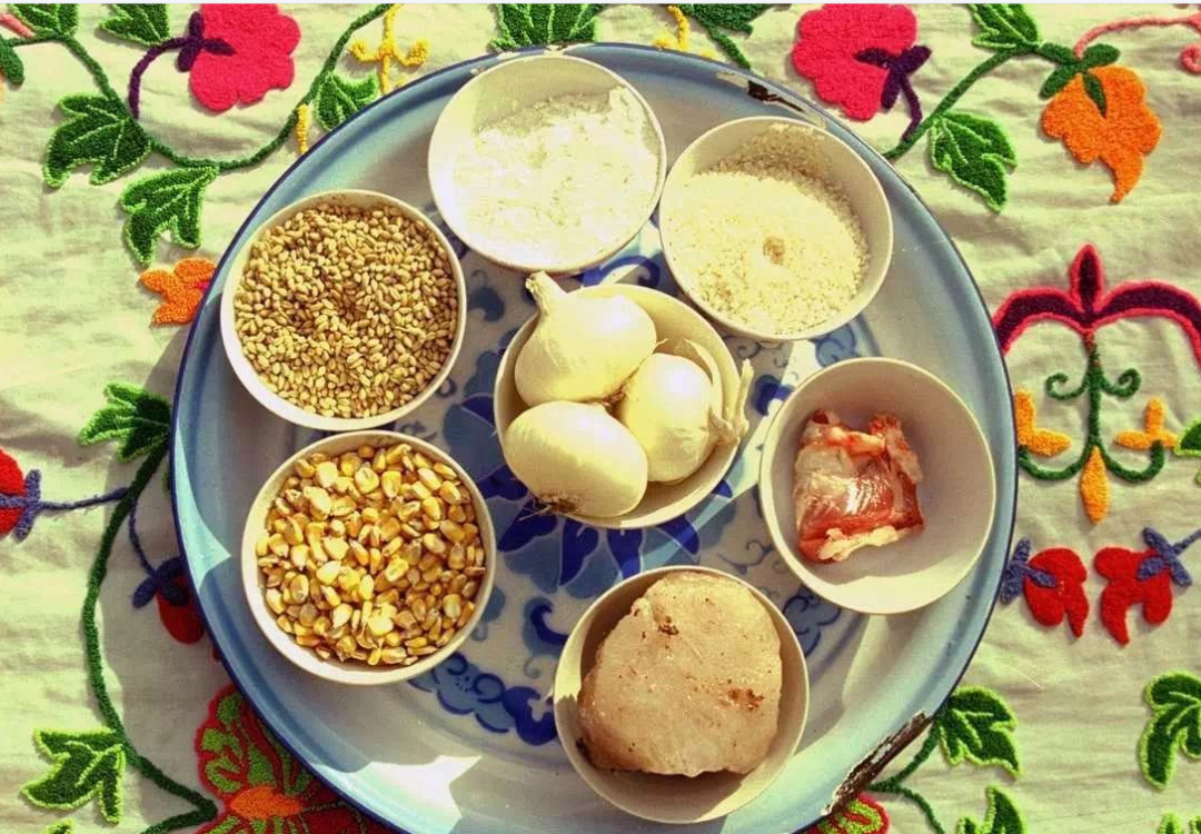 “納吾熱孜粥”的配製科學營養,由水、肉、鹽、大麥、小麥、面、奶疙瘩等七種原料構成,象徵着幸福、健康、成功、平安、富裕、成長。