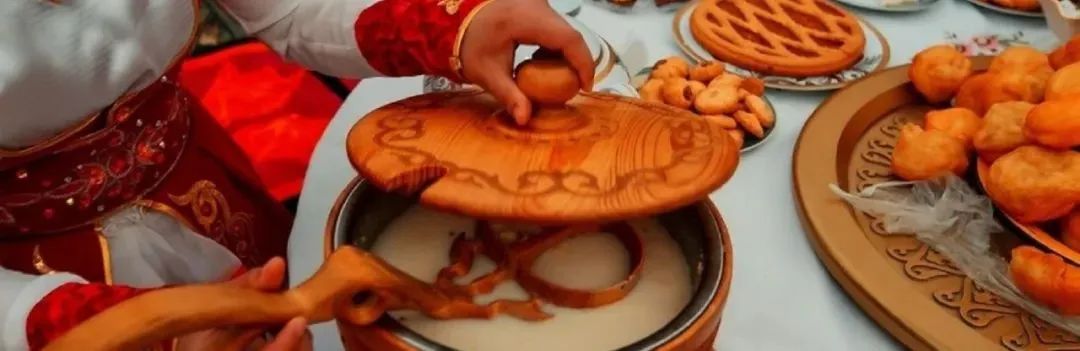 哈薩克族還有一種特別的習俗:烹飪“納吾熱孜粥”的時候,使用的鍋有四個鍋耳朵(也就是會在鍋裏放四個勺子,勺子的把露出來就相當於鍋的小耳朵),分別放四塊綿羊油。
