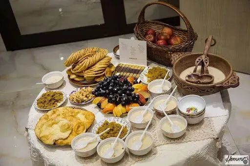 婦女們還要做一種帶花紋的“阿爾孜克”(一種油炸的面製品),形狀類似魷魚卷,直徑約6-8釐米,表面有許多大小均勻的芝麻粒。