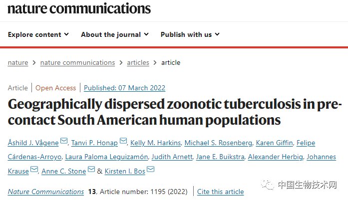 近日,發表在《Nature Communicaitons》上的一項新研究中,來自德國馬克斯普朗克人類歷史科學研究所和美國亞利桑那州立大學領導的國際研究團隊表明,關於結核桿菌最初傳播的説法可能不準確。他們發現,在結核病首次感染歐洲人幾個世紀以前,一種結核分枝桿菌就已經從南美州海岸傳播到內陸山區。這表明,在這些人羣中還存在其他的結核病傳播方式,例如人傳人,或陸生動物通過中間宿主將病原菌傳染給人類。