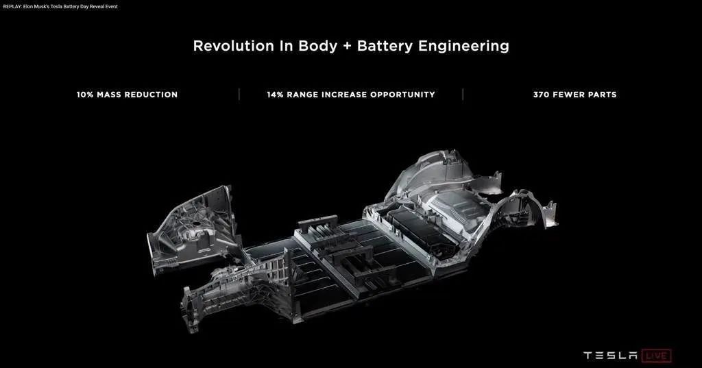 在 2020 年 9 月的電池日上,特斯拉除了發佈了 4680 電芯外,還發布了全新的整包封裝技術 CTC(Cell to Chassis),也就是取消電池包(Pack)設計,直接將電芯或模組安裝在車身上。馬斯克曾表示,採用了 CTC 技術後,配合一體化壓鑄技術,可以節省 370 個零部件,為車身減重 10%,將每千瓦時的電池成本降低 7%。