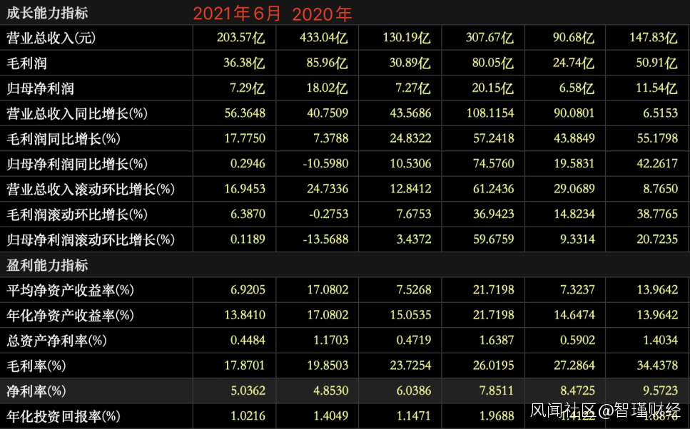 根據其2021年半年報,建業去年上半年實現營收203.57億元,同比增長56.36%。但歸母淨利潤則僅同比增長0.29%,為7.29億,毛利率也較年初下滑1.98個百分點至17.87%,淨利率則只有5%,兩項指標均低於行業平均水平。