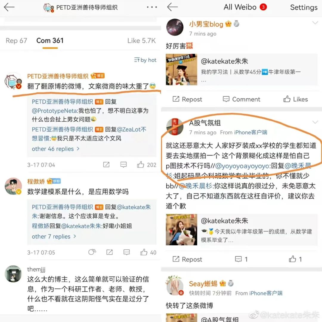 27天前,就有人質疑她學歷造假,覺得一個邊讀博邊做KOL的女孩,一定是“學媛”。還有人覺得她在圖書館的照片是擺拍,一看她的文案智商就不高。但有趣的是,有人真的在牛津官網找到了朱朱的照片。